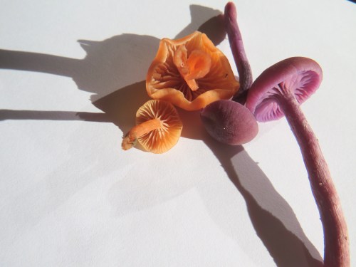 Closer to home, I have found that I have been watching what is on the ground in my garden as we have a new puppy. She tries to eat everything that protrudes from the ground and can do so with the skills of a ninja warrior. In my new ‘noticing’ of things in general, I came across some mushrooms growing and naturally I assume them to be harmful and dug them up (again, for my own personal gain, without a thought as to whether it was the right thing to do for the environment) just in case. They were beautiful specimens; the purple ones are apparently called ‘The Amethyst Deceiver’ and they were growing in all the rough untended areas of the garden. I decided to photograph them as they allowed the light through and cast shadows in a really interesting way. Look at the shadows cast by the tiny mushroom, ‘dream big’ it shouts, This exercise made me think that there are opportunities in places we don’t usually think to look and there is hope that as beings on this planet, our collective health, economy and togetherness will soon thrive again.