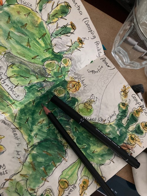 Last week was filled with sad news of the passing of friends and family of friends. I chose a corner of the memorial garden on campus to create a watercolour painting. I’m unsure if that is the name of the garden. It has become a place where tributes are left in memory of those that have passed in recent years. It is also a retreat for peaceful sitting. As I studied the leaves, flowers and man made structures; I reflected, just sat and thought. I layered my painting with the subtle changes in green tone. My aim was to give it the depth and richness I wanted to achieve. I pondered (now there’s a word I don’t use often enough) on how and when we turn to nature. We use plant materials to celebrate life, whether that life is in the current, recently or long since passed. Flowers are given, wreaths or bouquets are laid or trees are planted in memorial. We become connected to nature by these acts of tenderness throughout our lives; we become memories planted firmly in those places of solace when we have moved on. This little corner of the campus is truly a wonderful place for addressing life balance and mental reset. Capturing the current through text and poetry can develop or strengthen mindful practice. It lets us close all the open tabs and hit the power down button for a short while.